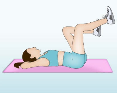 – Breathe Regularly. A lie as far away leg forward (straight leg should barely touch the floor) and bring the knee above your basin. The pedaling pace should be slow and steady.